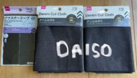 ・DAISO生地(70㎝×60㎝)※身長145㎝のため1枚の生地をまるまるエプロンの土台部分に使う。もう1枚の生地で肩用紐や腰用紐やバックを作る。