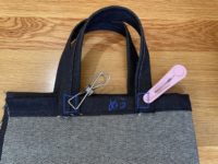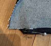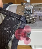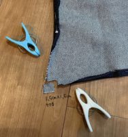 7.横と下部分はアイロンをしたので止めなくてもなんとかなるが、なんせデニム生地のため硬いので念のためこちらの三つ折り部分にもクリップ止め。