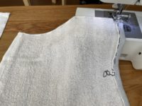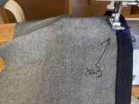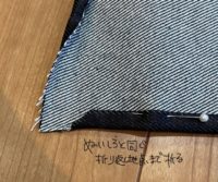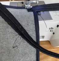 6.まわりも縫う。デニム生地のためほずれ気にならないので三つ折りにしないで縫った。