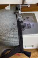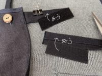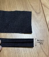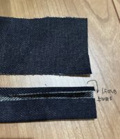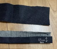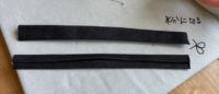 18.バイアステープを適当な大きさに切りミシンで縫う。
