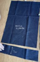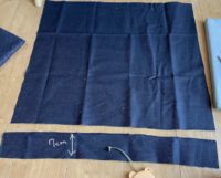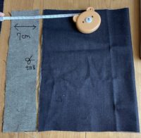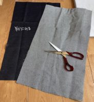11.もう1枚の生地を使って肩用の紐を作っていく。縦長に生地を置き、下から5cmを2枚切っておく。