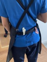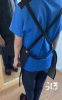 17.腰紐は試着をしてもらい、長さ調節。立った時はこれくらい。でも座ると広がるので要注意!!広がった時に苦しくない長さにすること!(^^)!