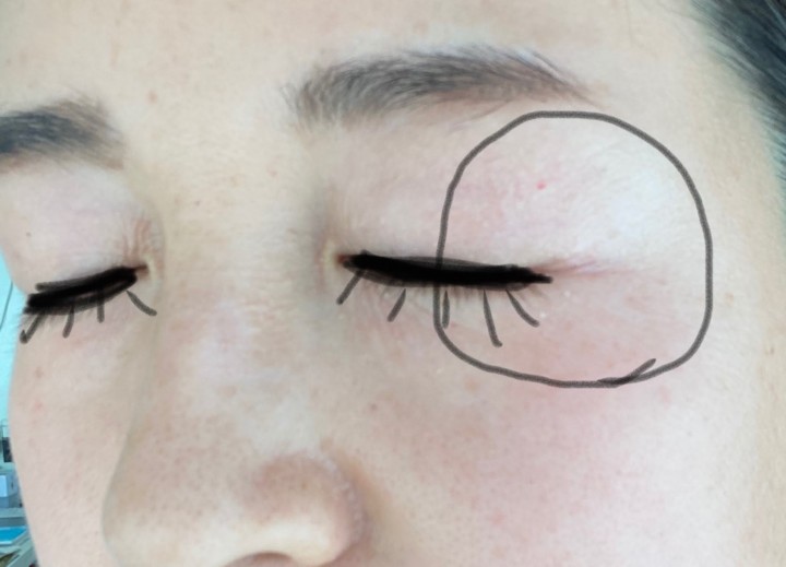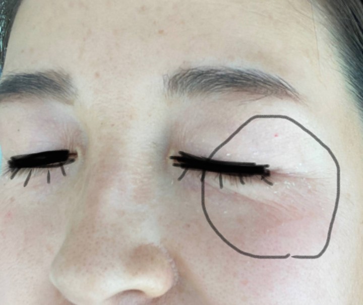 また、目尻のちりめんジワが凄すぎる。ツッパリもなく至って普通なのに、鏡で見るとパリパリのしわだらけ。。いくらセラピューテックとはいえ、ここまでちりめんジワがひどいと後々響きそうだったので、目尻のみワセリンをまた再開することにし(ワセリンをつける前と後の写真)気持ちふんわり肌になる。